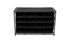 Mueble práctico y fácil de montar con un marco de aluminio que proporciona una excelente estabilidad. La robusta puerta abatible con asa ofrece un espacio de almacenamiento fácil de usar, como en casa. La puerta tiene una cerradura magnética. El armario contiene dos grandes compartimentos en los que se pueden guardar los utensilios. También hay un bolsillo organizador en el lateral para tener más espacio de almacenamiento. En los ganchos laterales se pueden fijar fácilmente varios bolsos o artículos similares.
