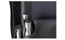 Una tumbona con respaldo ajustable. El respaldo de esta tumbona es ajustable en 5 posiciones. También tiene un marco de acero y un cómodo acolchado de poliéster de 600 deniers. Se pliega de forma compacta después de su uso y se transporta fácilmente con las correas de transporte.