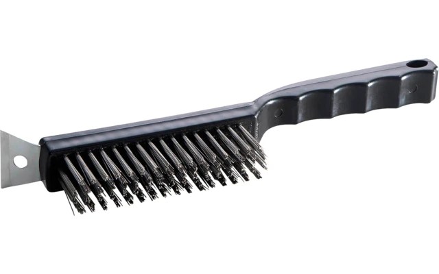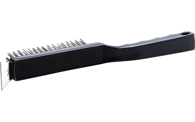 Limpie fácil y eficazmente con el cepillo de limpieza de placas de hierro fundido para barbacoas. Ideal para limpiar a fondo rejillas y placas de parrilla de hierro fundido. Si es posible, limpie siempre la placa de hierro fundido de la parrilla cuando esté caliente. El cepillo debe guardarse siempre en un lugar seco.