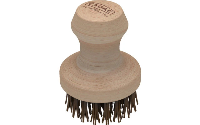 Práctico cepillo ideal para la limpieza de superficies con revestimiento de cerámica, cromo, hierro fundido o esmalte GreenGrill. Las cerdas están hechas de fibras vegetales naturales de Palmyra, son fuertes, duraderas y resistentes al calor.
