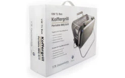 Práctica miniparrilla para camping & co. Acero inoxidable 18/8 con motivo del VW Bulli T1. La mini barbacoa se monta en pocos segundos y puede utilizarse perfectamente como barbacoa de camping, en picnics o en festivales gracias a su práctico formato de maleta. Gracias a su práctico tamaño, puede guardarse en la furgoneta o en el equipaje de la acampada para ahorrar espacio y ocupa poco. La parrilla de acero inoxidable de alta calidad es también un magnífico regalo para los fans del VW Bus o los campistas profesionales gracias a su relieve VW Bulli y a su buena elaboración. Licencia oficial de Volkswagen y garantía de calidad.