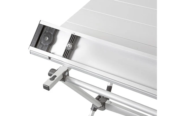 Mesa de exterior plegable con marco de aluminio ultraligero y tablero enrollable. Construcción completamente libre de plástico, sin inserciones ni conectores de plástico. Todos los tubos que forman el cuadro están protegidos contra los golpes para evitar la pérdida de piezas individuales. El montaje es rápido, muy fácil y no requiere herramientas. Muy buen tamaño de embalaje para facilitar el almacenamiento. Se entrega con una práctica bolsa de transporte.