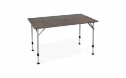 La mesa de camping Sevilla con tablero enrollable de paneles de aluminio y 4 patas regulables en altura es muy ligera. Es fácil de montar y tiene un tamaño de embalaje muy reducido. La entrega incluye una bolsa de transporte.