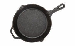Sartén de hierro fundido para freír y guisar deliciosamente. La distribución uniforme del calor garantiza resultados óptimos, incluso sin parrilla, directamente sobre el fuego. Los asados cortos quedan crujientes por fuera y jugosos por dentro, las verduras quedan crujientes y conservan sus nutrientes y las patatas asadas quedan crujientes y sabrosas. Gracias a las prácticas boquillas situadas a ambos lados, los líquidos y las salsas pueden verterse con facilidad y precisión. Apto para la parrilla, la cocina de gas, el horno o el fuego abierto.